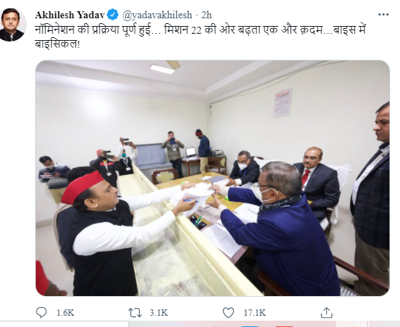 आज ही अखिलेश यादव ने भी करहल से पर्चा दाखिल किया है. अखिलेश यादव ने कहा कि ये ‘नॉमिनेशन’ (नामांकन) एक ‘मिशन’ है क्योंकि ये चुनाव प्रदेश और देश की अगली सदी का इतिहास लिखेगा. करहल विधानसभा क्षेत्र मैनपुरी संसदीय निर्वाचन क्षेत्र का हिस्सा है जिसका प्रतिनिधित्व समाजवादी पार्टी के संस्थापक मुलायम सिंह यादव करते हैं.