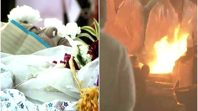 भारत रत्न और स्वर कोकिला लता मंगेशकर (Lata Mangeshkar Funeral) का मुंबई के शिवाजी पार्क में पूरे राजकीय सम्मान के साथ रविवार को अंतिम संस्कार किया गया. लता के भाई हृदयनाथ मंगेशकर ने नम आंखों से उन्हें मुखाग्नि दी. इस मौके पर हज़ारों चाहने वाले और लता दीदी के परिवार के सदस्य वहां पर मौजूद रहे. फिल्मी दुनिया से लेकर राजनीतिक और खेल जगत की हस्तियां भी लता के अंतिम संस्कार में शामिल हुईं. राष्ट्रीय ध्वज में लिपटे लता मंगेशकर के पार्थिव शरीर को अंतिम संस्कार के लिए दक्षिण मुंबई में उनके आवास से शिवाजी पार्क लाया गया.