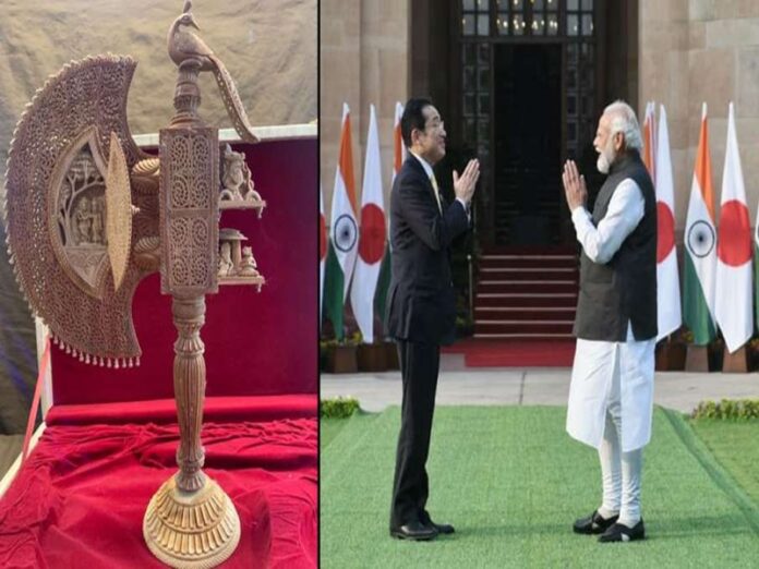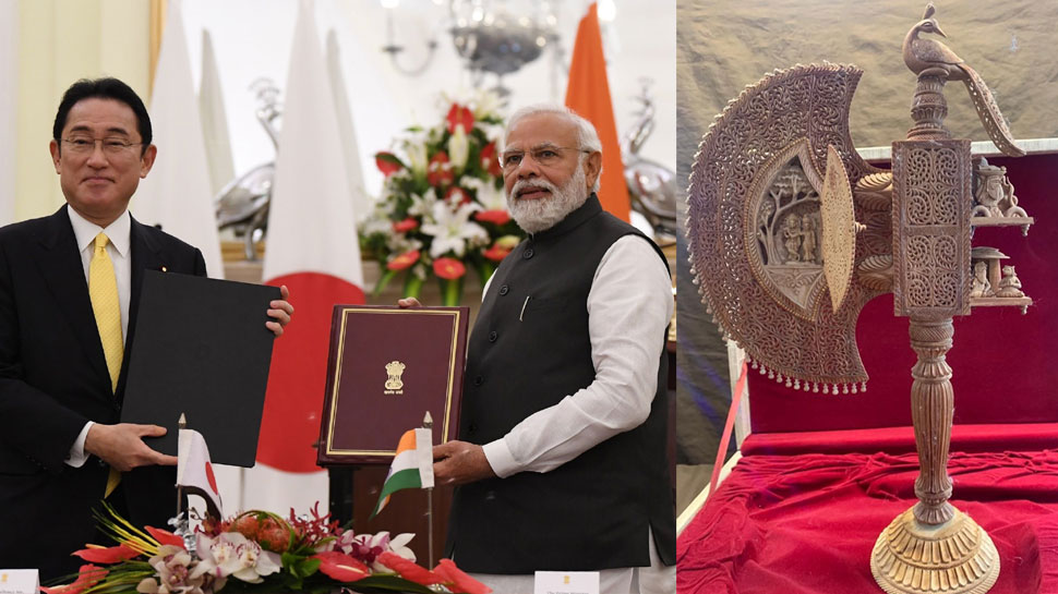 यह कलाकृति शुद्ध चंदन की लकड़ी से बनी है जोकि मुख्य रूप से भारत के दक्षिणी भागों के जंगलों में मिलती है. आपको बता दें कि जापान के प्रधानमंत्री फुमियो किशिदा दो दिवसीय यात्रा पर दिल्ली आये हुये हैं. फुमियो किशिदा प्रधानमंत्री नरेंद्र मोदी के साथ द्विपक्षीय वार्ता करने के अलावा 14वें भारत-जापान वार्षिक शिखर सम्मेलन में हिस्सा लेंगे. किशिदा प्रधानमंत्री मोदी के निमंत्रण पर भारत के आधिकारिक दौरे पर आये हुये थे.