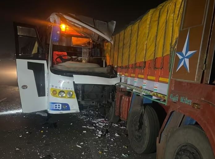 महाराष्ट्र में एक भीषण सड़क हादसा हो गया है. यहां पुणे सोलापुर नेशनल हाईवे (Pune Solapur National Highway Accident) पर एक बस और ट्रक (Bus Truck Collide in Maharashtra) के बीच जोरदार टक्कर हो गई है. तेज रफ्तार लग्जरी बस सड़क किनारे खड़े ट्रक से जाकर टकरा गई है. इस हादसे में अब तक 4 यात्रियों की मौत हो गई है. वहीं इस भीषण सड़क हादसे में 20 से ज्यादा लोग घायल हो गए हैं. घायलों को तत्काल सरकारी अस्पताल में भर्ती कराया गया है. हालांकि आशंका यह भी जताई जा रही है कि मरने वालों की संख्या बढ़ सकती है.